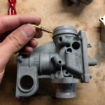 New pilot jets in. Couldn’t quite make out the original size stamping (15?) and the new ones said…15? 16? The holes looked smaller, so I’m a bit apprehensive, as my main problem has been my idle circuit (I think, i.e. starting from a stop to about 1/4 throttle).